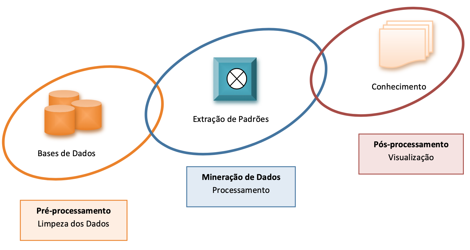 Como se vê, a etapa em que efetivamente se dá a descoberta de conhecimento é a da Mineração de Dados. Muitas ferramentas originalmente implementadas apenas para a etapa de Mineração de Dados atualmente permitem fazer também o pré e o pós-processamento. Por isso, na prática, vários autores consideram os termos Descoberta de Conhecimento e Mineração de Dados como equivalentes. A seguir, vamos focar de modo mais detalhado as principais tarefas da Mineração de Dados.