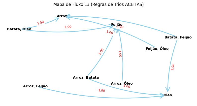 - Métricas (Sup, Conf, Lift): Filtros estatísticos que separam o ruído do conhecimento real e valioso.