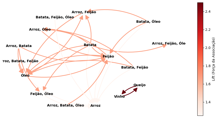 apriori()da Prática 4 como critério de filtragem (parâmetrolift_min).(Avançado) Pesquise o algoritmo FP-Growth como alternativa mais eficiente ao Apriori. Quais são as principais vantagens em bases de dados muito grandes?