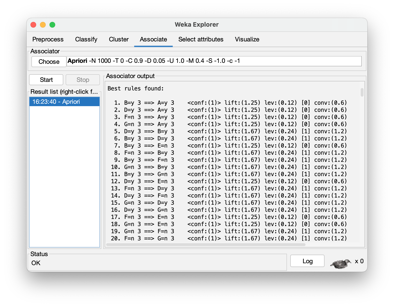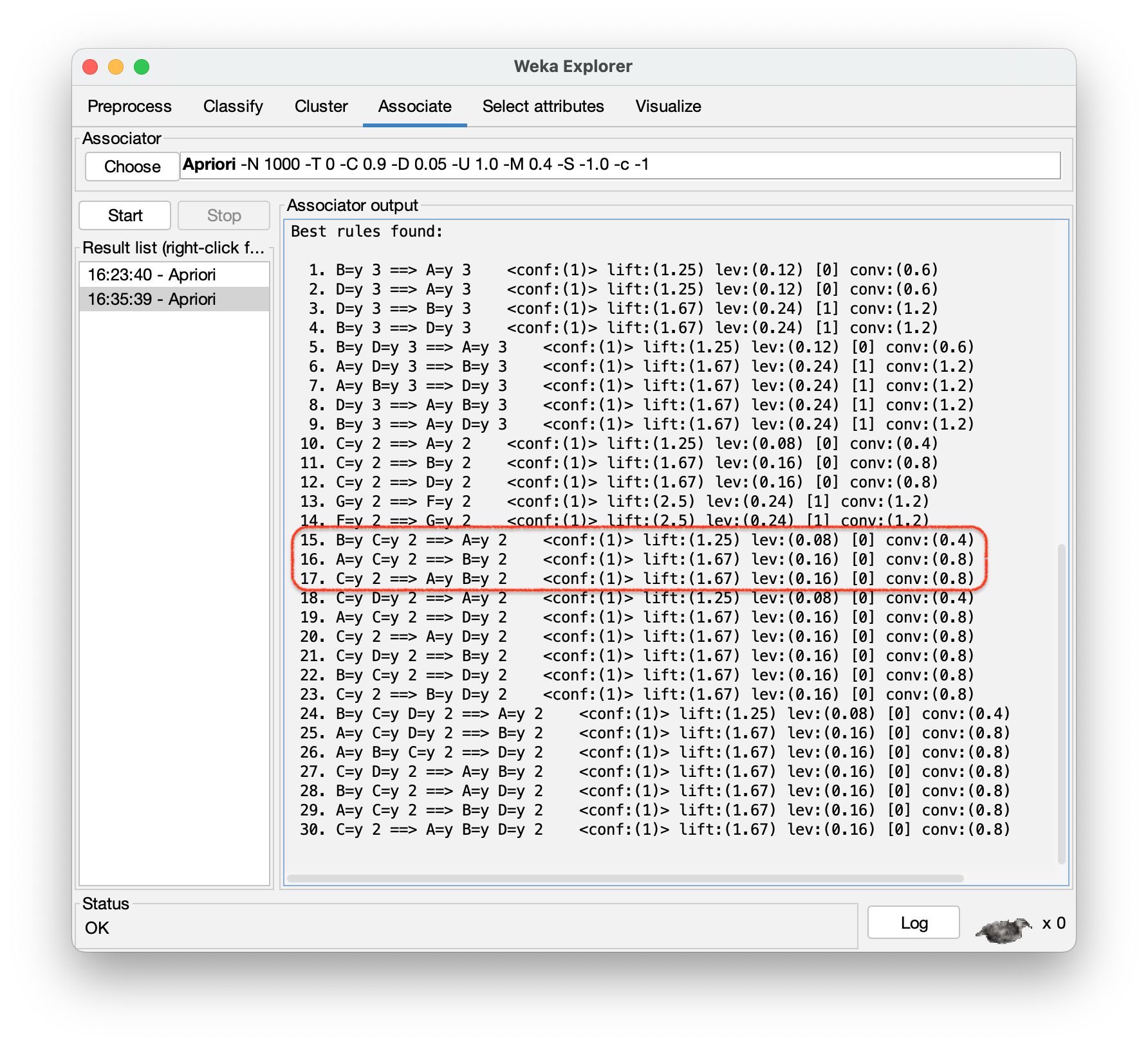 | {Batata} → {Óleo, Feijão} | 40.0% | 1 | 1.67 |