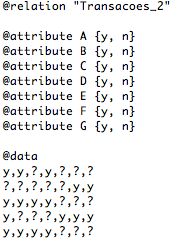 (50%) Crie uma pequena Cesta de Compras (± 5 Exemplos) com itens relacionados ao seu ambiente de trabalho, ou à área de seu TCC, ou a qualquer outra área de seu interesse, e gere as Regras de Associação no Weka. Anexe o respectivo arquivo “